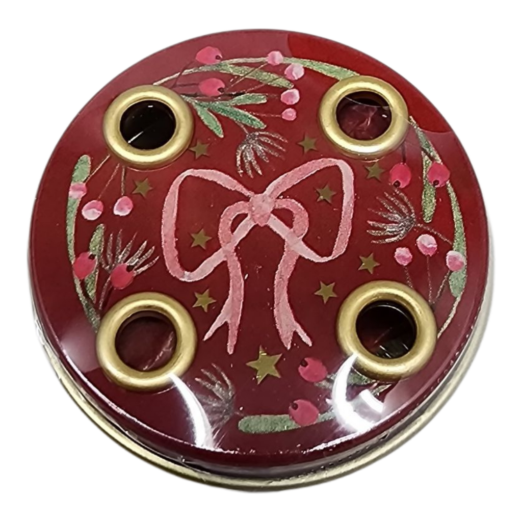 Celebrate the season of joy and anticipation with the captivating Joyful Advent Candle Tin! This enchanting decorative piece features a deep red tin adorned with festive designs, showcasing a beautiful bow surrounded by sparkling stars and greenery. Measuring 4.5 inches in diameter, it adds a cheerful touch to any holiday decor, perfect for embracing the spirit of Advent as you count down the days until Christmas.