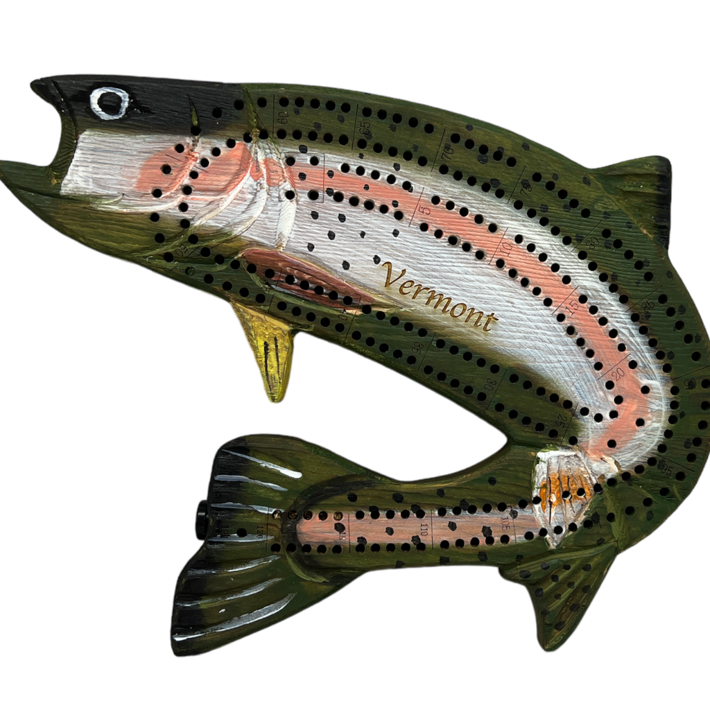 Wooden Cribbage board in the shape of a Rainbow Trout