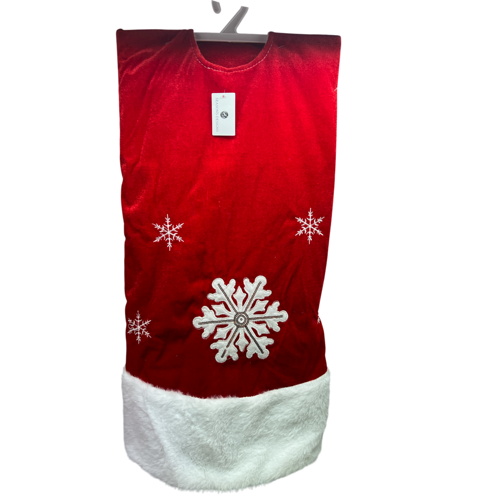 Transform your holiday decor with the stunning 48" Christmas Red with White Snowflake Tree Skirt! This beautiful tree skirt features a rich red fabric that's decorated with elegant white snowflakes, creating a vibrant and festive backdrop for your Christmas tree. The soft plush white trim adds a cozy touch, enhancing the holiday spirit in your home.
