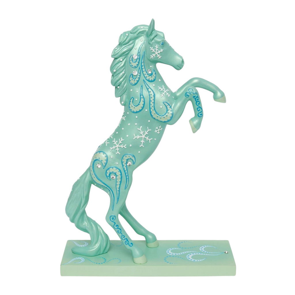 Introduce a touch of elegance and whimsy to your holiday collection with this stunning figurine from the Trail of Painted Ponies Collection, titled "Christmas Season Squall." Standing at 10.5 inches tall, this eye-catching piece features a striking turquoise horse rearing gracefully, adorned with intricate swirls and sparkling snowflakes that evoke the beauty of winter. The vibrant color and elegant design perfectly capture the enchantment of the season, making it a captivating addition to any display.