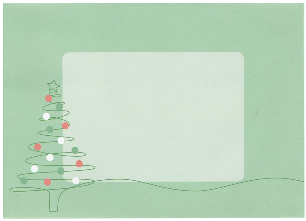 Inside, the message reads, "Warmest wishes for a holiday that's bright with every joy and delight. Season's Greetings." Each 5" x 7" card offers ample space for your personalized holiday messages, while the inside design mirrors the front with a subtle and elegant Christmas tree illustration on a soft green background.