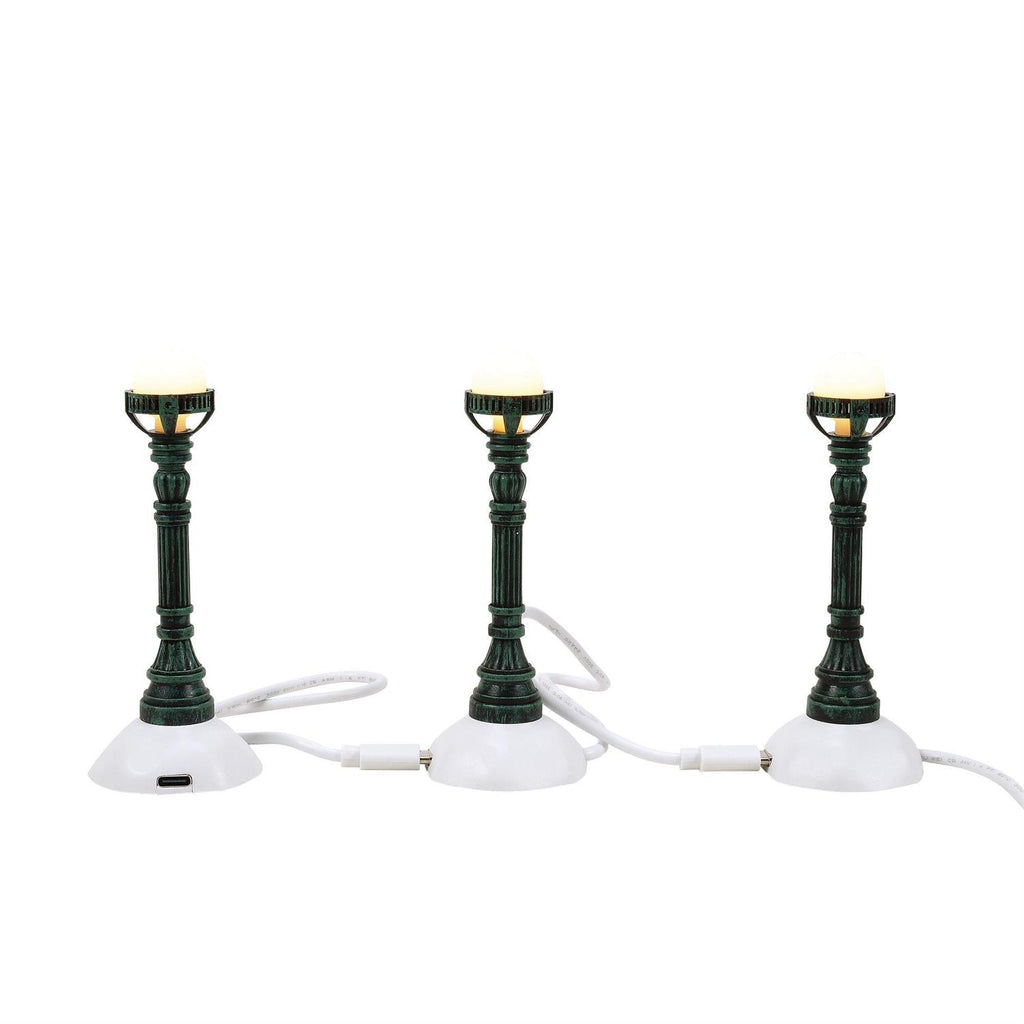 Illuminate your holiday village display with the delightful Copper Lamp Post - 3 Piece Set from Department 56! This charming set includes three beautifully designed lamp posts that add a warm and inviting glow to your festive scenes. Each lamp post stands at 4.53 inches tall, crafted from a combination of durable plastic, LED elements, and metal components. The included USB cord and power block adapter cater to USA and Canada, ensuring an easy setup for instant ambiance.