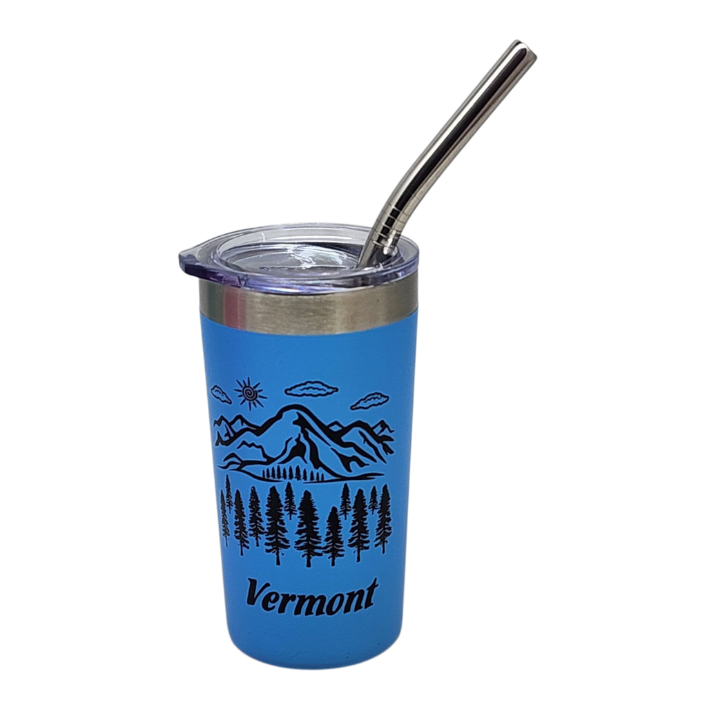 This sleek 2 oz stainless steel shooter is a perfect blend of style and functionality, designed to elevate your drinking experience. Its vibrant Blue exterior features a minimalist black silhouette of a Mountain scene, capturing the essence of Vermont’s natural beauty. The graphic design adds a touch of wilderness charm, making it an ideal keepsake for nature lovers and those with an affinity for the Green Mountain State.