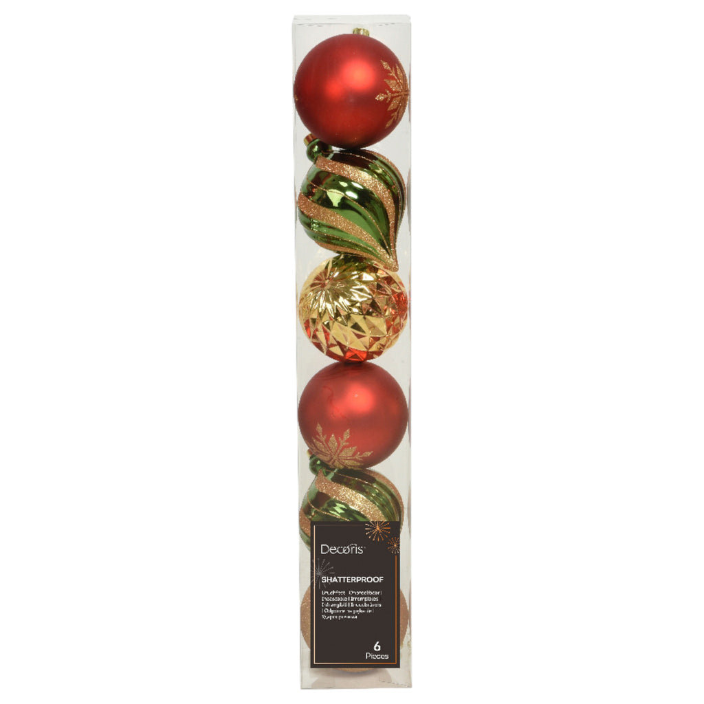 Classic Red and Green Shatterproof Ornament Set - Tube of Six