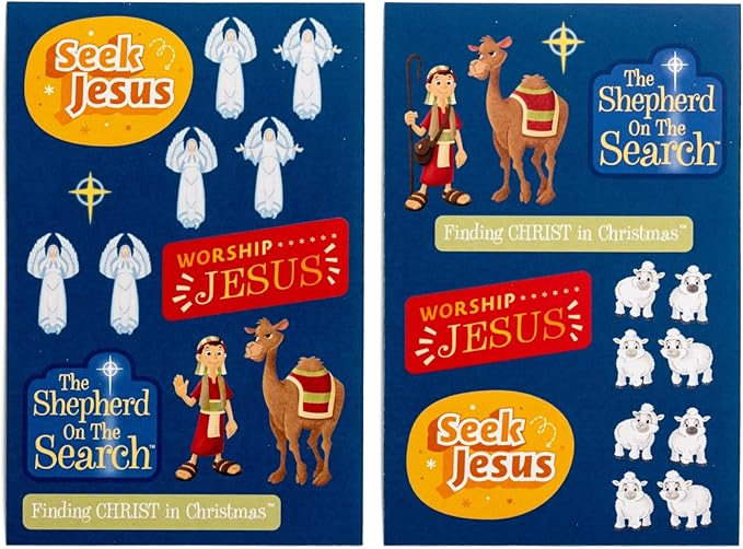 Inside, the card encourages reflection and worship, celebrating the birth of Jesus as the ultimate gift our hearts long for. With space to add a personal touch, this set also includes fun and interactive stickers, allowing recipients to create their own scenes and messages that highlight the shepherd's search for Christ. Share the joy and meaning of Christmas in an interactive and creative way with this unique set of 8 cards, perfect for engaging both the young and the young at heart in the wondrous story of Jesus' birth.