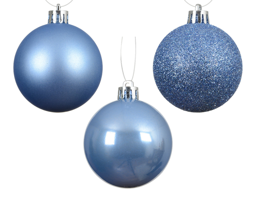 Elegant Assorted Sky Blue Shatterproof Ornaments - Set of 10