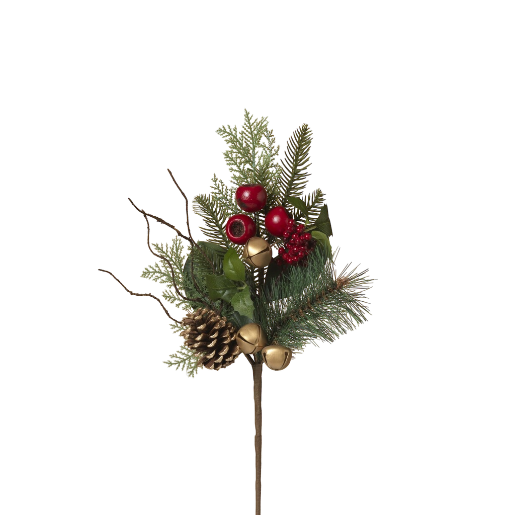 Perfect for adding a touch of nature to your home, this floral pick can be used in a variety of ways. Use it to embellish wreaths, garlands, or centerpieces, or place it in a vase as a standalone decoration that brings a cozy and inviting feel to your space. The inclusion of jingle bells adds a whimsical touch, making it ideal for enhancing your holiday decorations with a playful spirit.