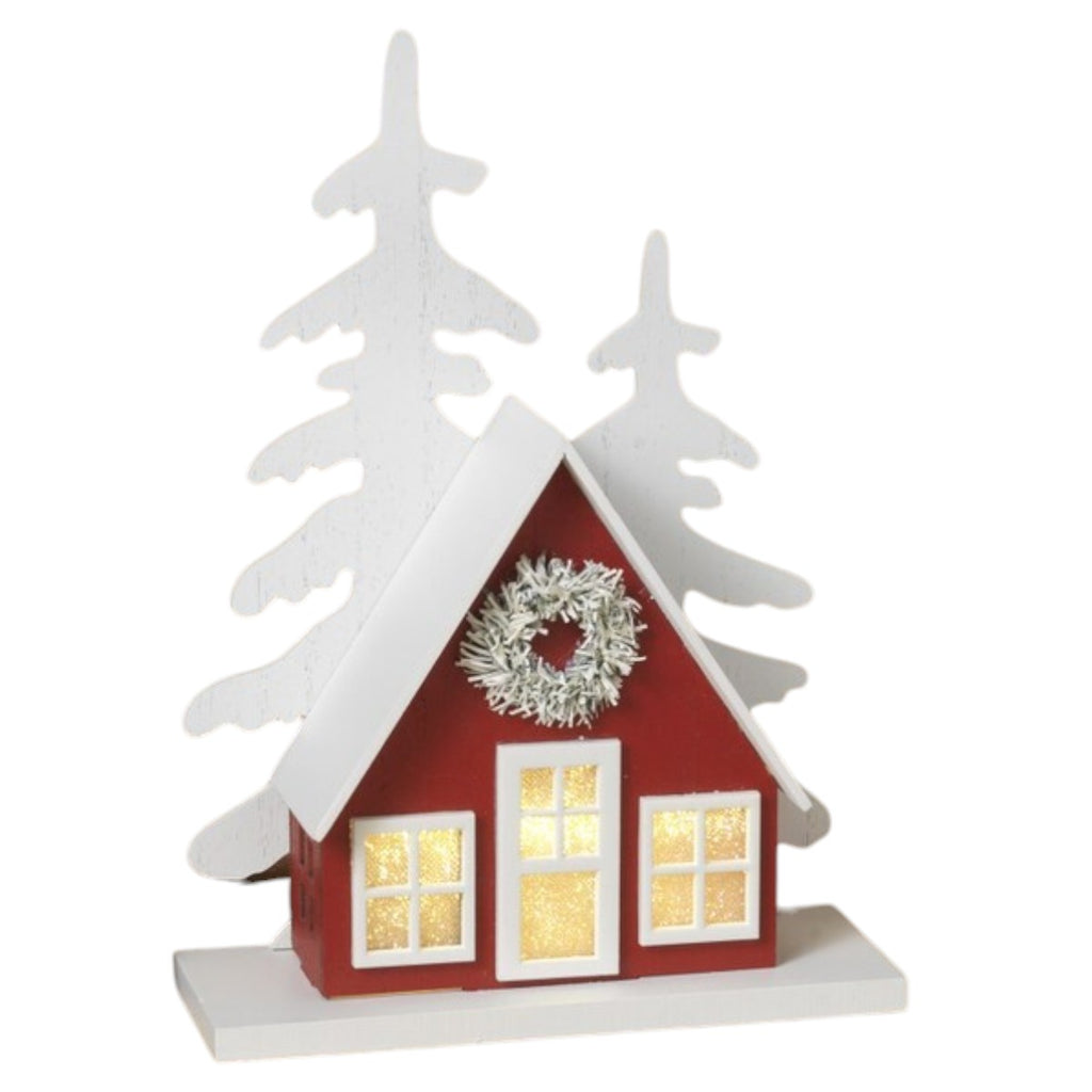 Welcome the magic of the season into your home with our charming Winter Wonderland Light-Up House. Standing at just about 9.5 inches tall, this adorable wooden decoration captures the essence of a cozy holiday retreat, complete with a cheerful wreath adorning the front door and surrounded by two elegant evergreen trees. Once illuminated, this enchanting piece casts a warm glow, and its inviting demeanor makes it the perfect centerpiece for your holiday decor, creating an atmosphere of warmth and joy that beckons loved ones to gather and celebrate.