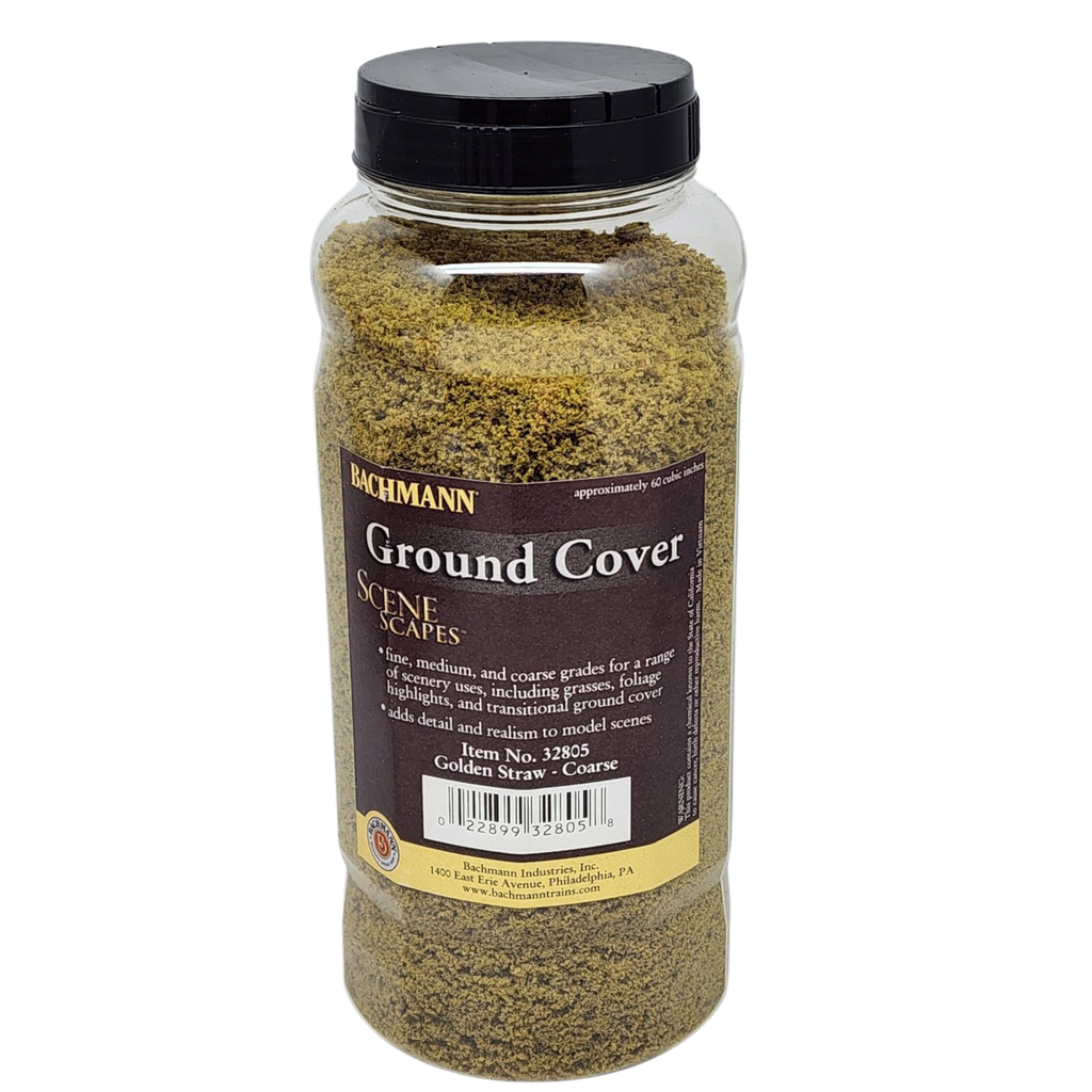 Bring your model landscapes to life with this Golden Straw coarse ground cover by Bachmann. Whether you're crafting rolling fields of grass, adding subtle foliage highlights, or creating smooth transitions between different terrain types, this finely textured material adds layers of detail and realism to your miniature scenes. The rich golden straw color gives a warm and natural finish to any diorama or model train layout. With its shaker top lid, spreading this ground cover is quick and easy, letting you sprinkle just the right amount where you need it.