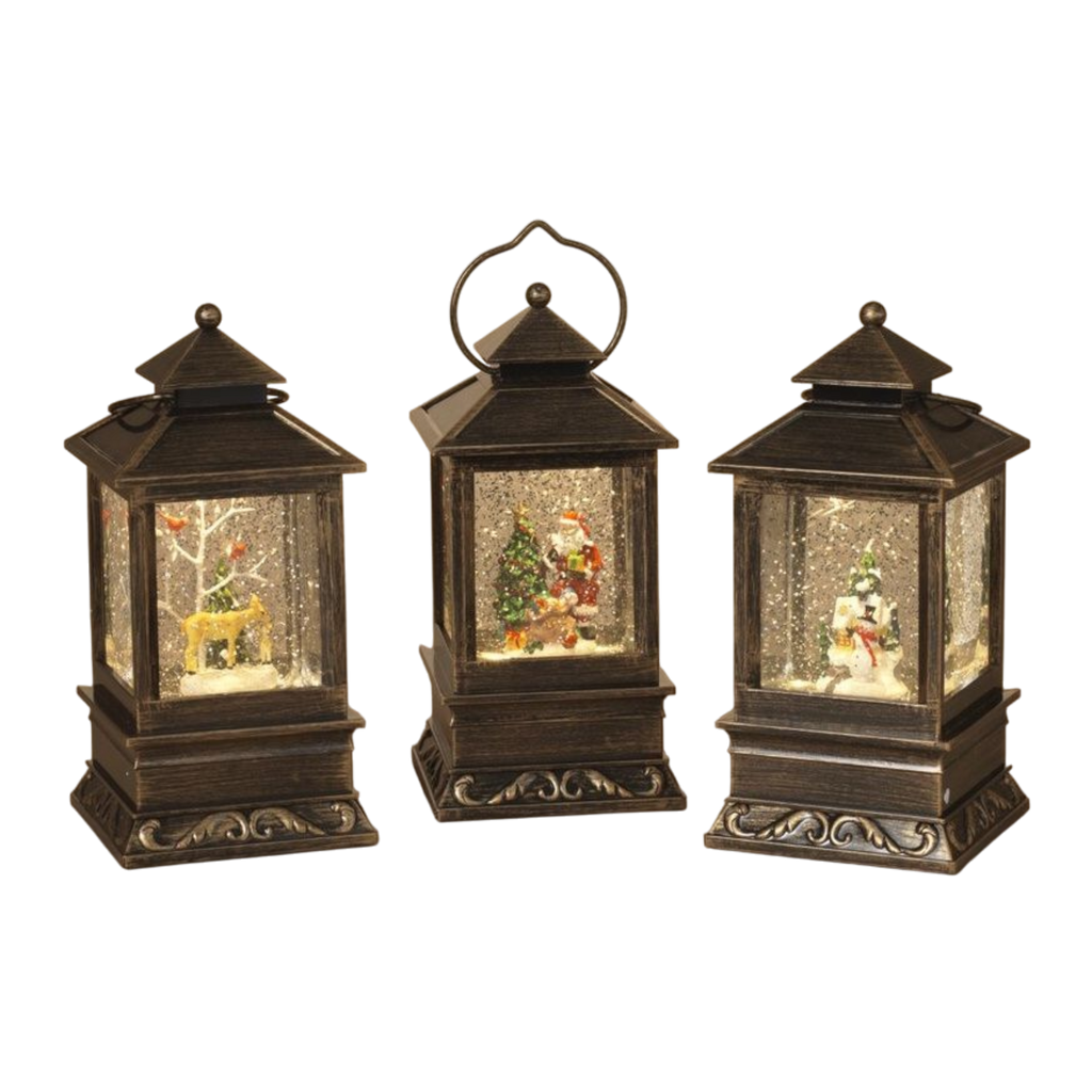 Illuminate your festive season with our enchanting holiday lanterns! Each beautifully crafted lantern stands at just over 8 inches tall and features captivating scenes depicting Santa Claus, cheerful snowmen, and a delightful reindeer, all nestled in a shimmering snowy backdrop. Made to bring a little magic into your home, these lanterns create a winter wonderland effect, making every glance a joyful adventure.