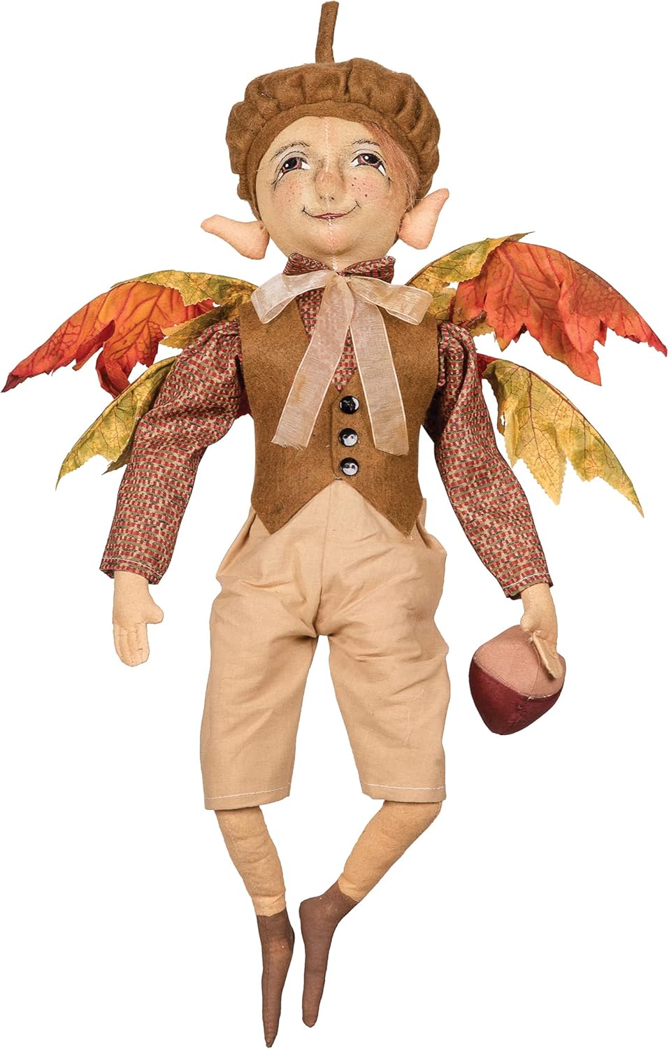 Meet Ambrose, the charming soft sculpture who brings the spirit of fall to life! Standing at an impressive 20 inches tall, this delightful doll is crafted with love and attention to detail, embodying all the warmth and cheer of the autumn season. With his adorable acorn hat, leafy wings, and a sweet smile, Ambrose is all set for a cozy gathering. The unique beanbag bottom provides stability, allowing him to sit comfortably on your mantle, a quaint shelf, or at the heart of your festive table setting.
