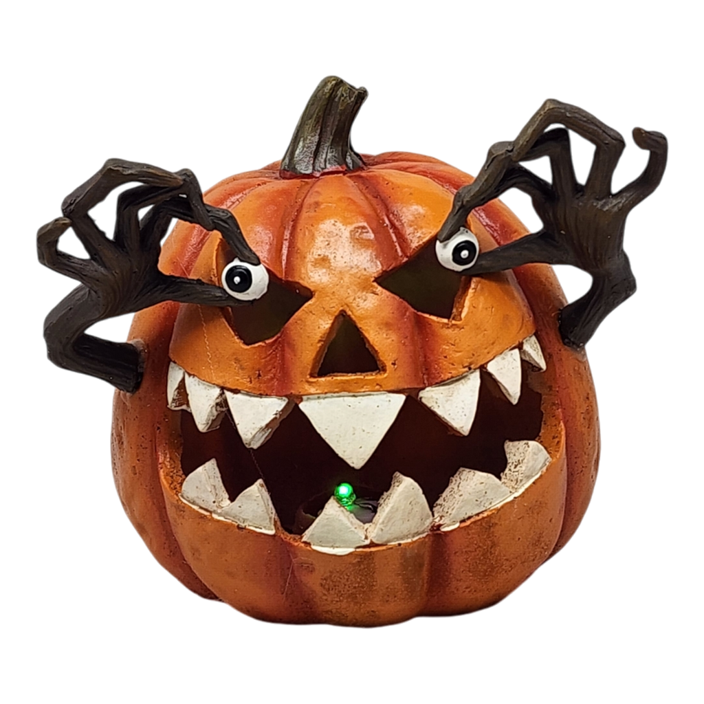 Crafted from sturdy resin this pumpkin doesn't just look fun; it's built to last through numerous celebrations. Each time the lights flicker and change it adds a magical touch to any room or outdoor space inviting thrills and chills without the fright. With its playful design this piece offers a unique twist on traditional Halloween decor that can be enjoyed by all ages blending the eerie with the entertaining. Transform your space into a whimsical wonderland this Halloween season!
