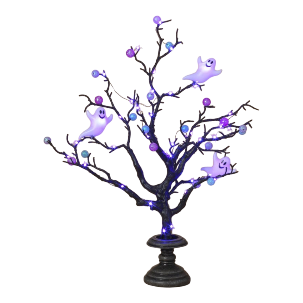 The intricate details of the twisted branches, paired with the soft, colorful illumination, create a magical atmosphere perfect for Halloween. Its compact size makes it ideal for tabletops, mantels, or even entryways, where it can welcome guests with a friendly, ghostly glow. As a piece of fun Halloween trivia, the concept of ghosts dates back to ancient civilizations, where people believed that spirits of the dead could interact with the living. This delightful decoration combines this age-old lore with modern design, providing a charming centerpiece that captivates and delights.