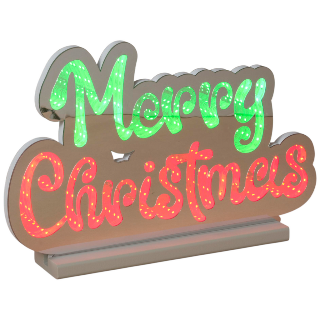 Brighten up your holiday celebrations with the charming "Lighted Infinity Mirror - Merry Christmas"! This festive decoration combines a modern twist with classic cheer, featuring a cheerful "Merry Christmas" message illuminated with vibrant green and red lights. Perfect for both indoor and outdoor use, this delightful piece is sure to catch the eye of family and friends, creating a warm, welcoming atmosphere for gatherings and holiday festivities alike.