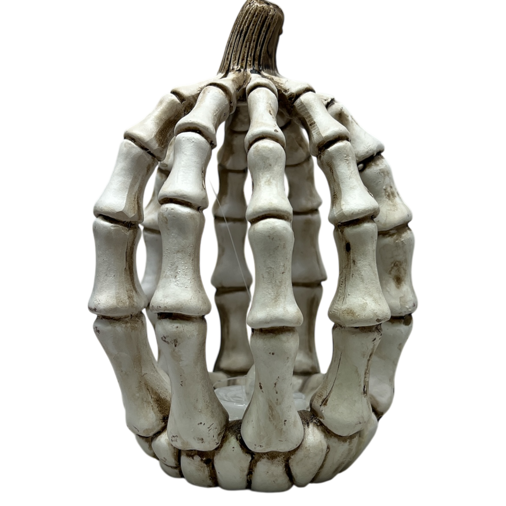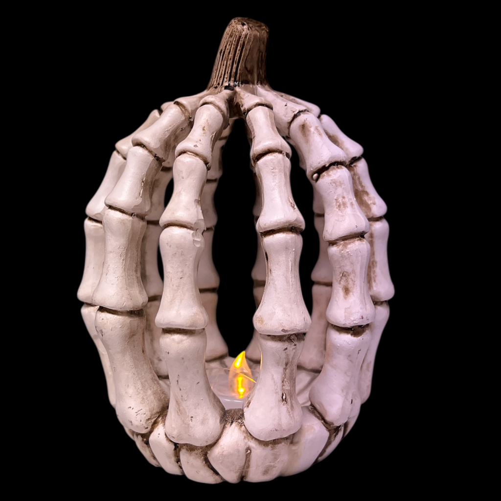 Illuminate your Halloween decor with the unique and eye-catching Lighted Resin Halloween Skeleton Pumpkin! Standing at 6 and a quarter inches tall and measuring 4 and a half inches wide, this cleverly designed piece combines the classic shape of a pumpkin with a playful twist of skeleton bones, making it a captivating focal point for your seasonal displays. The intricate detailing of the "bones" adds a spooky yet whimsical character that will enchant both children and adults alike.