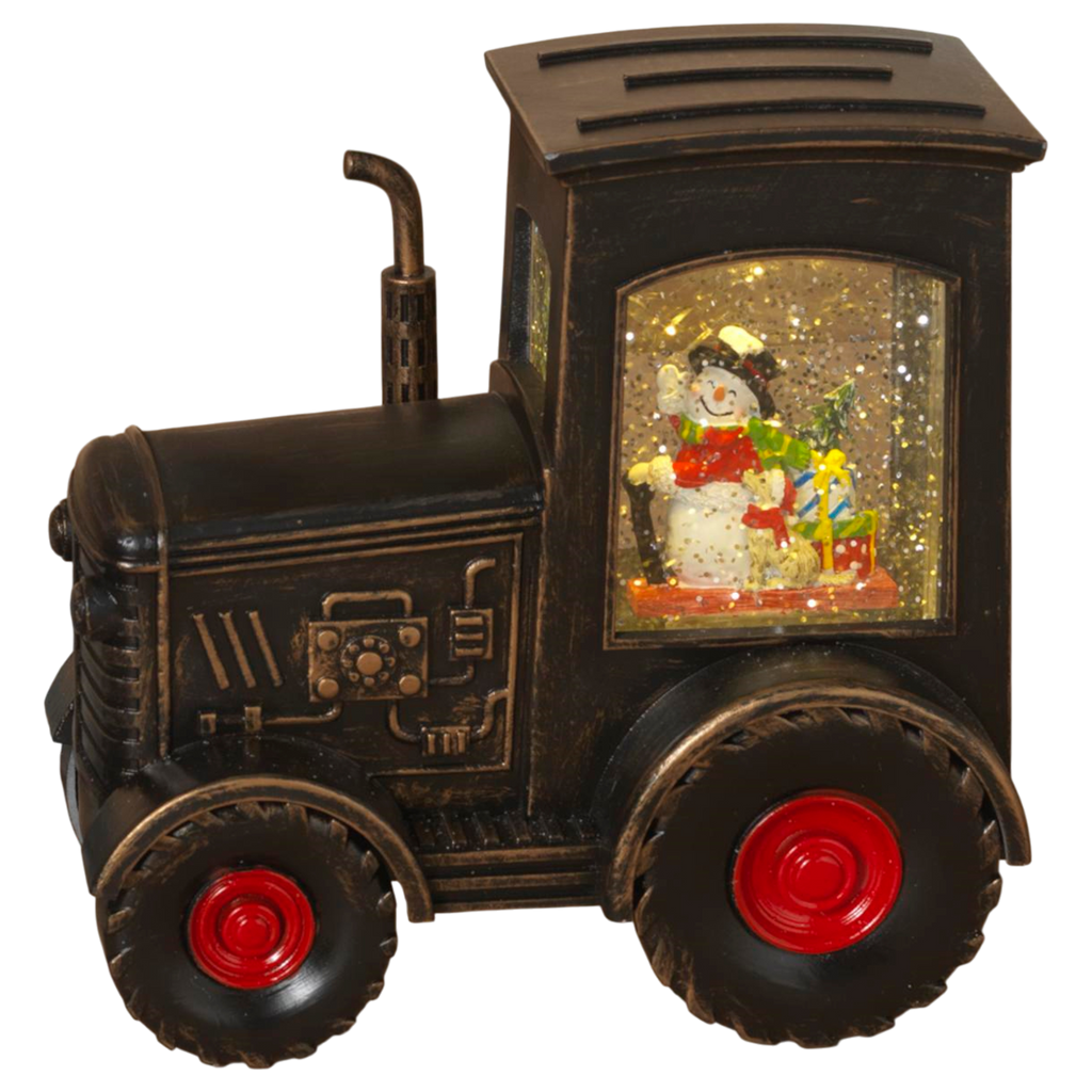 This Snowman’s Country Tractor Snowglobe brings rustic charm and frosty cheer to your holiday décor. Housed in a vintage-style black tractor with bold red wheels, the glitter-filled cabin reveals a jolly snowman clutching a Christmas tree beside a golden gift. Shake it up and watch the snow swirl while LED lights add a cozy glow—like a winter’s night on the farm, minus the frostbite.
