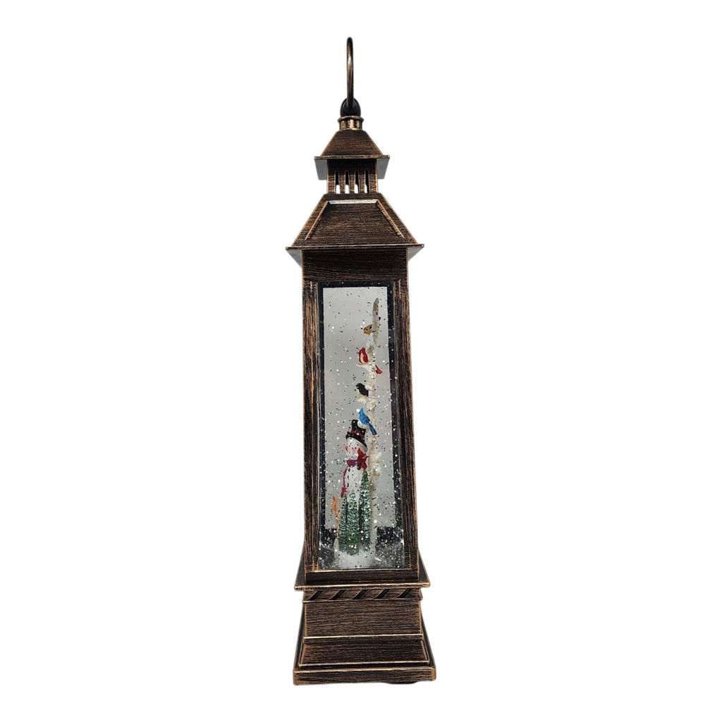 Embrace the enchanting magic of winter with our Frosty and Friends Lighted Spinning Waterglobe Lantern! Standing a stately 14 inches tall, this lantern transports you to a serene snow-filled scene where Frosty the Snowman and his woodland friends celebrate the winter holidays. With a swirling flurry of snowflakes that dances around the adorable figurines, this lantern turns any room into a winter wonderland. Perfect for creating a cozy atmosphere during holiday gatherings or adding seasonal charm to your decor, it’s sure to be a conversation starter!