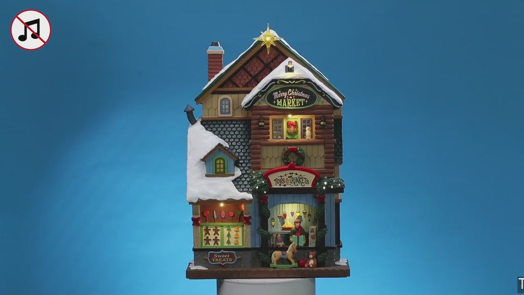 The Merry Christmas Market is a battery-operated, lighted village building that encapsulates the magic and joy of a festive holiday market. Brimming with intricate details and vibrant decorations, this charming structure is perfect for enhancing the holiday spirit in your village display.