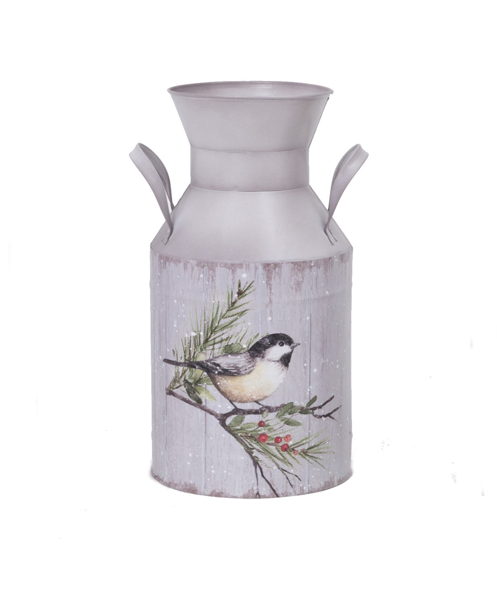 Looking for a festive way to get into the holiday spirit? Look no further than this adorable metal holiday milk can featuring one cheerful chickadee and a beautiful winter scene! Perfect for adding a touch of cheer to any home.