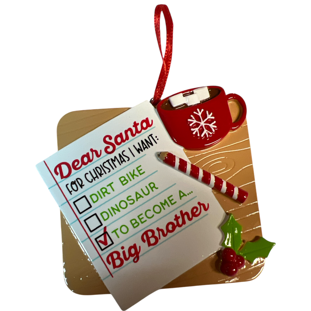 Note to Santa Wishing To Become a Big Brother Ornament