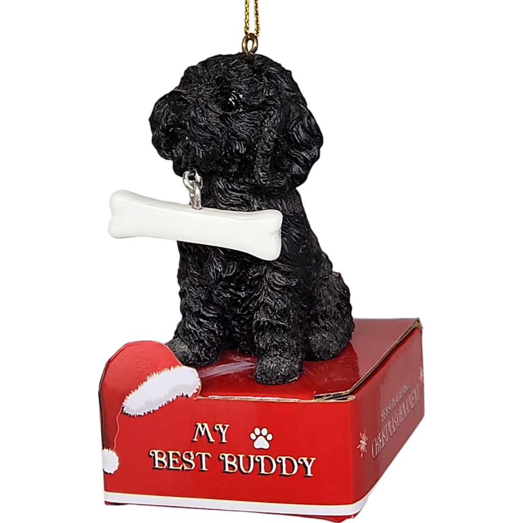 Celebrate the elegance and charm of your furry companion with our delightful Black Poodle with Bone Ornament! This beautifully crafted ornament features a detailed depiction of a proud black poodle, shown sitting regally with a bone gently held in its mouth. Measuring approximately 3" x 2" x 2", it's the perfect size to hang on your Christmas tree or display in your home, adding sophistication and warmth to your holiday decor.