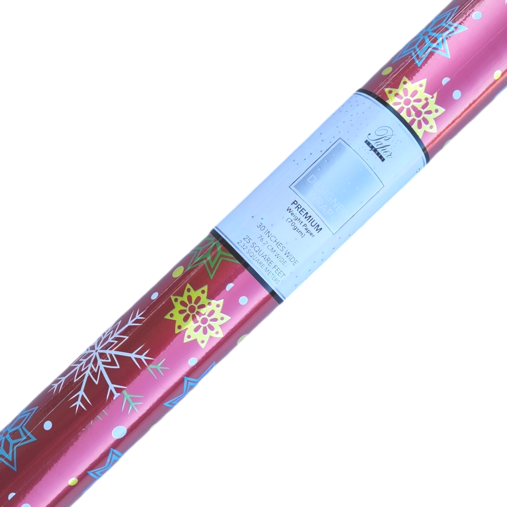 Premium Foil Roll Wrap - 30" x 120" - Festive Snowflake Sparkle