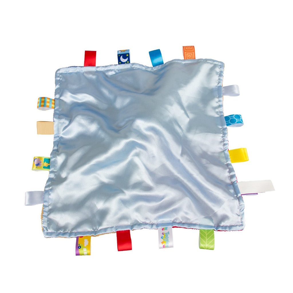 Taggies Buddy Dog character blanket has a small stuffed toy connected to a 13.5 inch square blanket, and Taggies patented looped ribbon tags that babies love to explore and rub. With fun and colorful applique, bright red sneakers, and colorful accents, buddy dog is a sporty favorite. With truly innovative attributes and small beginnings, Taggies has revolutionized and redefined how little ones feel secure and engaged in play. Mary Meyer is an environmentally conscious company and has been making toys that are safe and fun since 1933