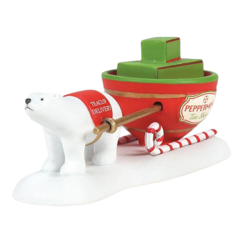 Bring a sprinkle of holiday cheer to your North Pole village with the delightful Teacup Delivery Service accessory from Department 56! This charming piece features an adorable polar bear pulling a vibrant red sleigh adorned with a teacup and stacked tea boxes, perfect for tea lovers and holiday enthusiasts alike. Measuring 1.57 inches tall, 1.5 inches wide, and 3.94 inches long, this whimsical accessory captures the spirit of seasonal fun and the joy of giving.