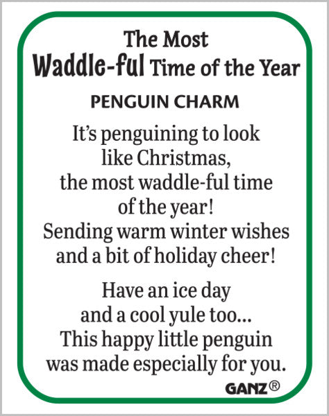 - Includes Sentiment card: The Most Waddle-ful Time of the Year PENGUIN CHARM It's penguining to look like Christmas, the most waddle-ful time of the year! Sending warm winter wishes and a bit of holiday cheer! Have an ice day and a cool yule too... This happy little penguin was made especially for you.