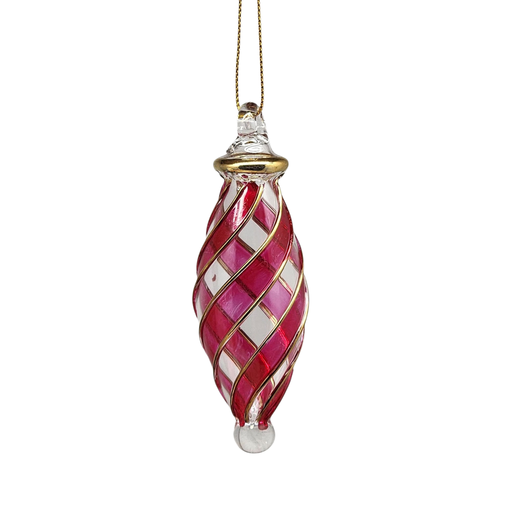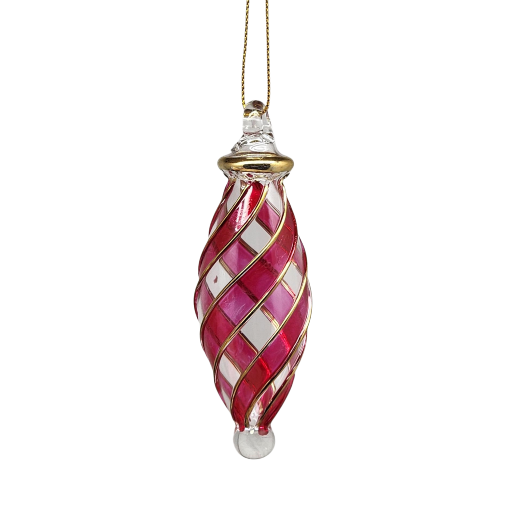 Infuse your holiday decor with vibrant elegance with the Twisted Harmony Ornament in Ruby Red. This stunning piece is handcrafted and mouth-blown by skilled artisans in Egypt, showcasing a beautiful design featuring a spiral twist that captures the light in exquisite ways. The striking ruby red color, enhanced by shimmering gold accents, offers a bold yet sophisticated touch, making it a delightful addition to your Christmas tree or any festive display that embodies the spirit of the season.