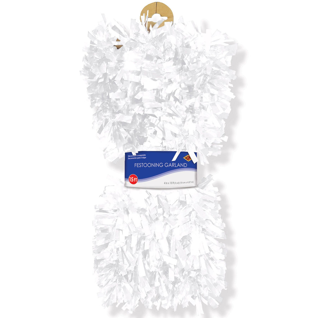 Festooning refers to decorating a space for a special occasion. This can include hanging lights, paper, or flowers around a space, especially in curves. This garland is perfect for a mantle, table edge, wreath or tree.
