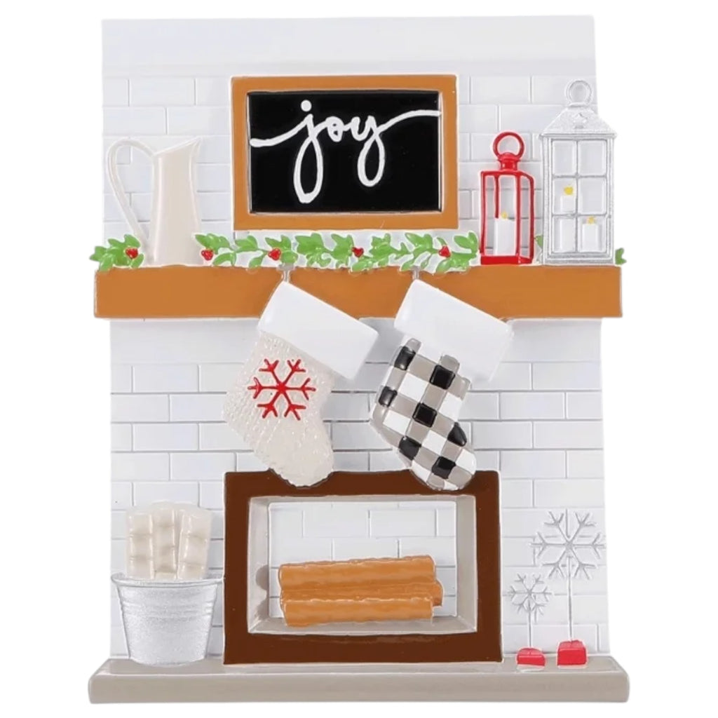 Bring the warmth of the holiday season into your home with the charming Cozy Fireplace Ornament! This delightful ornament showcases a beautifully detailed fireplace scene, complete with a mantel adorned with a cheerful “joy” sign, festive garland, and two cozy stockings hanging in anticipation of Christmas treats. The detailed design includes elements like a lantern and a wood-burning fire, all crafted from durable resin for lasting enjoyment. Measuring approximately 4.75 inches tall by 3.75 inches wide, it’s the perfect addition to your holiday décor.