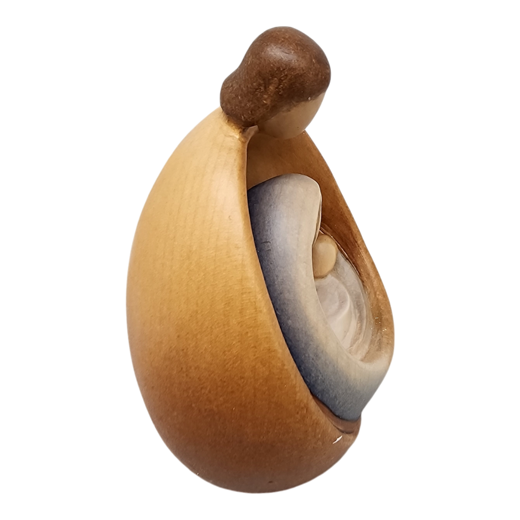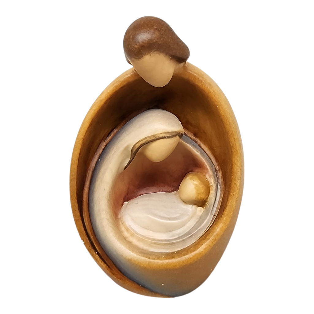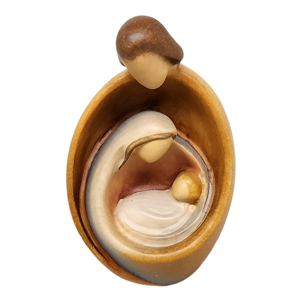 Presenting our beautifully crafted "Holy Family" nativity ornament, hand-carved from exquisite Maple wood in Italy. This stunning piece features an intricate depiction of Mary, Joseph, and Baby Jesus, capturing their serene and loving essence within a sleek, oval-shaped frame.