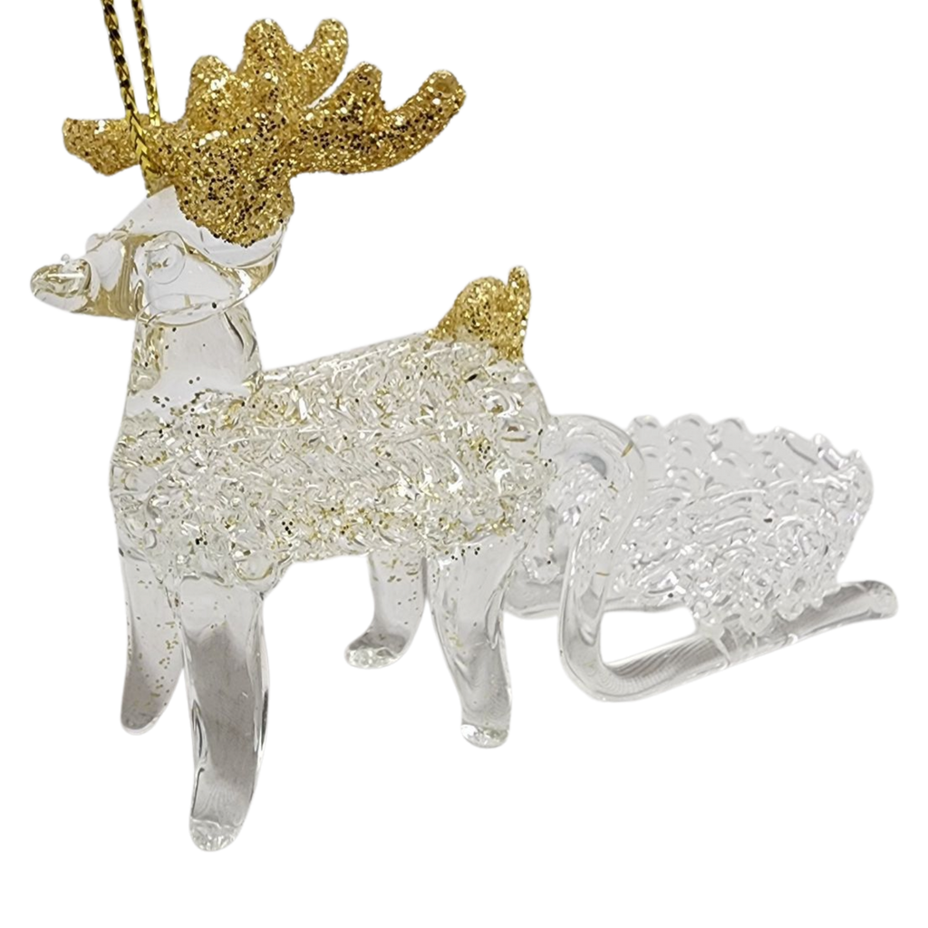 Glitter-Kissed Glass Reindeer and Sleigh Ornament