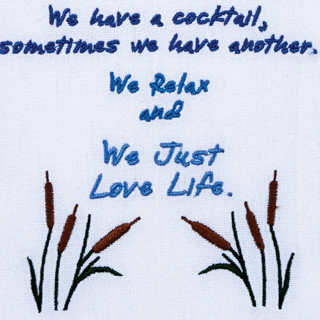 "At the Lake we slooooo down We chair-sit. We visit with friends. We watch birds, sometimes we name them. We have a cocktail, sometimes we have another. We Relax and We Just Love Life"