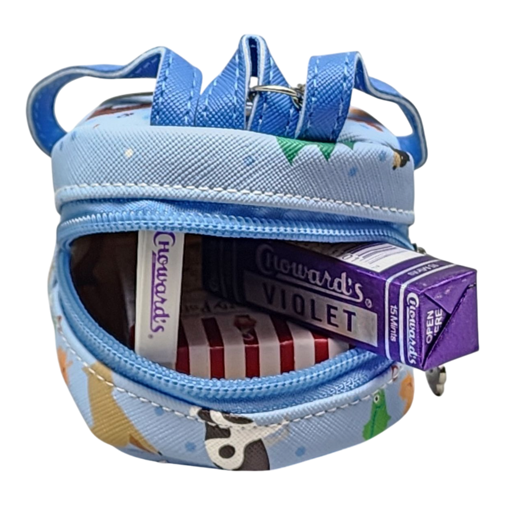 Equipped with a secure zippered closure, this mini backpack keeps your belongings safe while adding a whimsical touch to your daily outings. The sturdy straps and keychain attachment make it easy to carry or clip onto your larger bag for fun on-the-go convenience. While candy is not included, the backpack is ideal for storing sweets, trinkets, or small personal items, making it a versatile addition to your accessories collection.