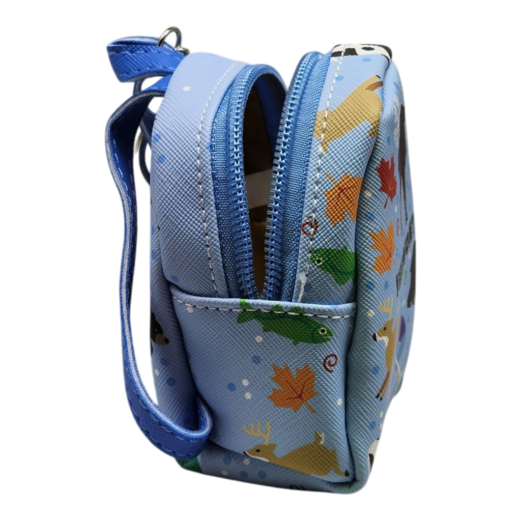 Introducing our adorable mini souvenir backpack, measuring 4.5 inches by 3.5 inches by 2.5 inches, perfect for carrying your little treasures or snacks! This charming backpack features a playful design adorned with delightful illustrations of Vermont’s wildlife, including bears, moose, and other iconic symbols, making it a fun and stylish accessory for both kids and adults who take pride in their love for Vermont.