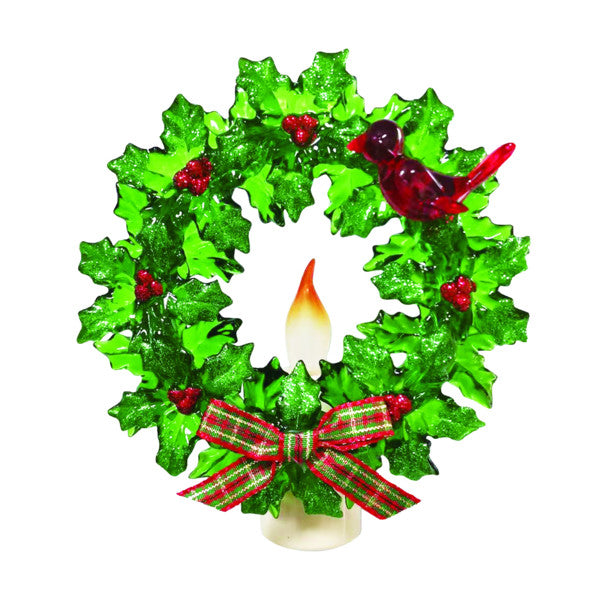 Bring the warmth of the holiday spirit into your home with the charming Cardinal on a Wreath Acrylic Nightlight! This delightful nightlight combines festive cheer with practicality, featuring a beautifully designed wreath adorned with holly leaves, bright red berries, and a lovely cardinal. What sets this nightlight apart is its special LED lighting; the flickering flame bulb at the center creates a cozy glow while additional embedded LED rice lights bring the wreath to life, making it a stunning focal point in any room.