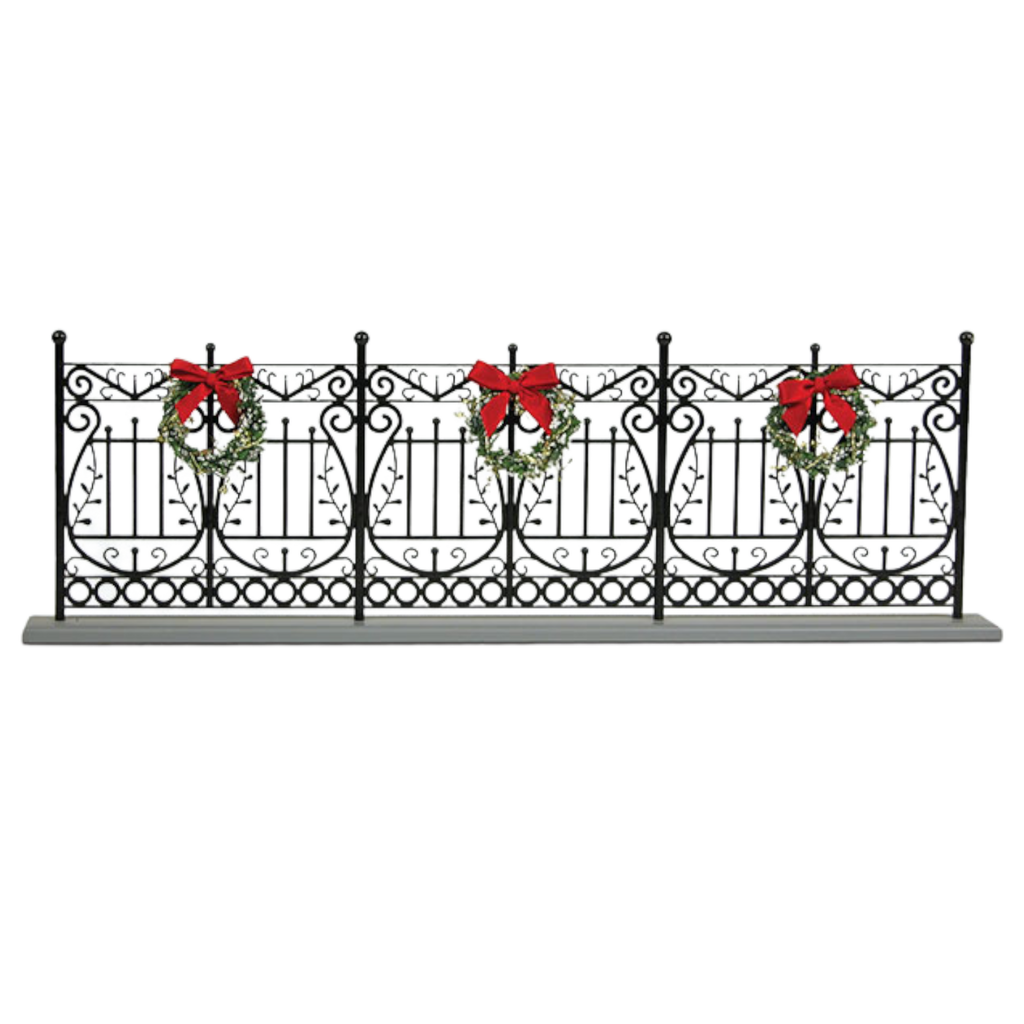Byers' Choice Wrought Iron Fence is hand crafted using lightweight plastic material that gives a classy look to the fence. Comes with stylish snowy wreaths for a perfect holiday touch. The Byers Choice campus is dedicated to bringing the special warmth and traditions of Christmas into your home. You will love building or giving a collection of Byers Choice fine handcrafted gifts.