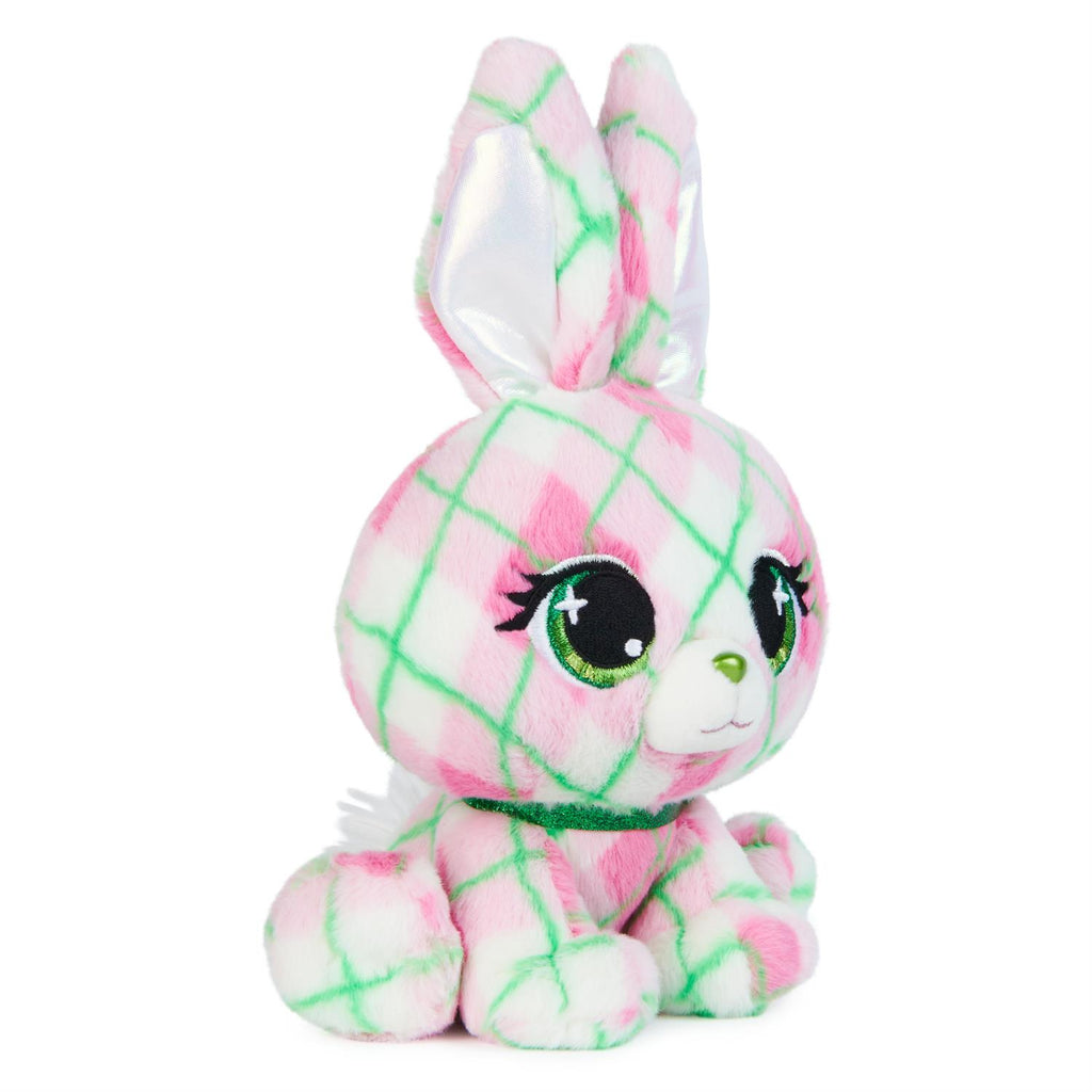 Kennedy Karats is a true classic. This beautiful bunny has pastel plaid printed plush with an iridescent lining in her ears. Her gorgeous green eyes match her sparkly collar and are accented with a white shadow that matches her puffy tail. You can find Kennedy on Martha`s Vineyard riding her bike around town, taking in the sights. P.Lushes Pets are designer plush from all around the world who love to look their best. Everywhere is your personal runway with P.Lushes Pets! This stylish squad of fabulous fashionistas serves chic with a sprinkle of attitude and a whole lot of glitter. Luxe, premium fabrics and a sparkling collar enhance their fashion-inspired looks! Collect them all, from scented Juicy Jam styles to birthstone-inspired Gem Stars, to find all Limited Edition and Special Edition chase plush.