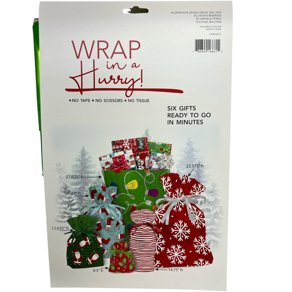 Wrap In A Hurry Pull String Gift Bag - 6 Piece Festive Assortment