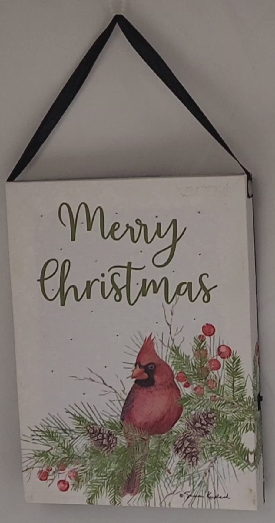 Celebrate the joyous spirit of the season with this exquisite Merry Christmas Fiber Optic Lighted Canvas Art. Measuring 8" x 6", this charming piece captures the beauty of a bright red cardinal perched among lush greenery, pine cones, and holly berries, conveying the cheerful message "Merry Christmas" in elegant script.
