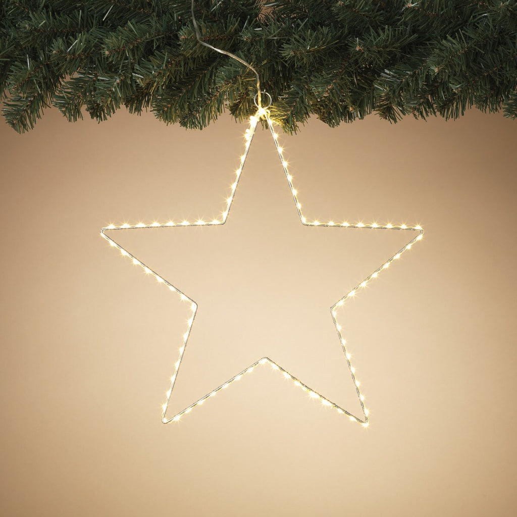 Add a touch of celestial charm to your holiday decor with the stunning Lighted Metal Star! Measuring 15 inches, this beautifully crafted star is elegantly designed with silver wire and adorned with 85 warm white LED lights that radiate a cozy glow, perfect for enhancing your festive atmosphere. Its versatile design makes it suitable for both indoor and outdoor use, allowing you to create a magical ambiance in any setting.