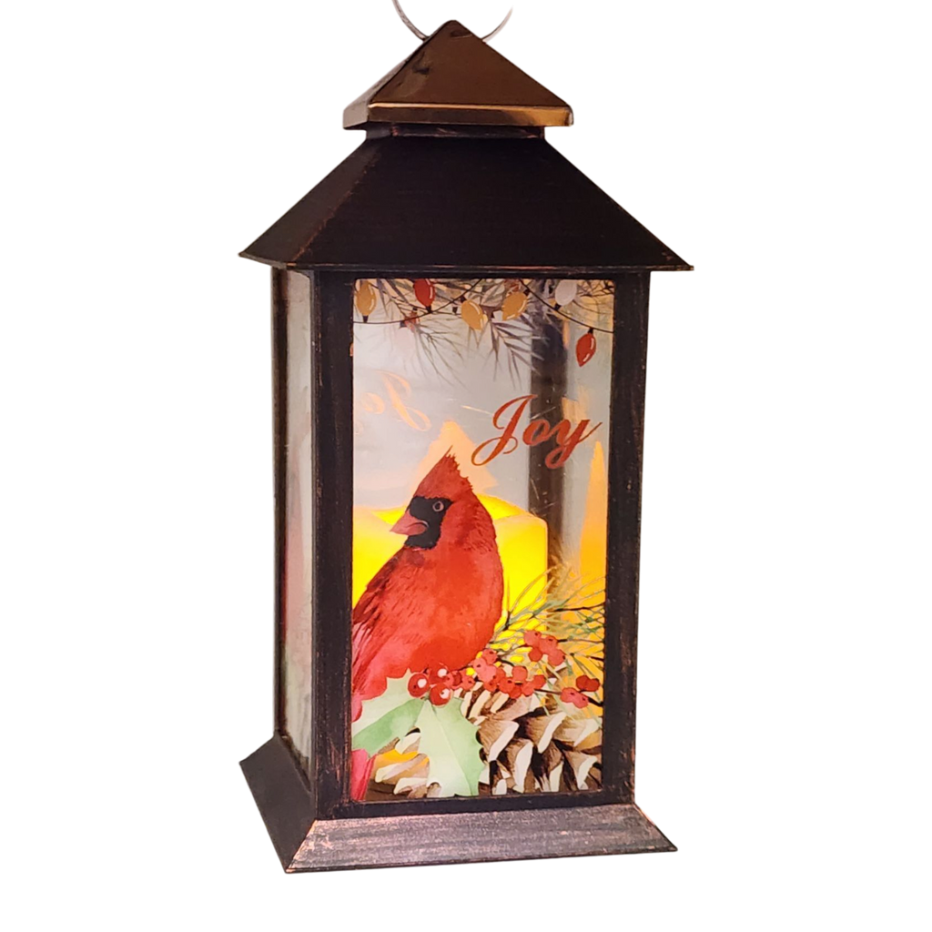 Celebrate the beauty of the season with our delightful Joyful Cardinal Lantern! Standing tall at 12 inches, this exquisite lantern features captivating imagery of vibrant red cardinals surrounded by colorful autumn leaves, emphasizing the joy of the holiday spirit. The elegant design, accentuated with the word “Joy” delicately placed throughout, makes it a perfect centerpiece for your holiday decorations, evoking warmth and cheer in any setting.