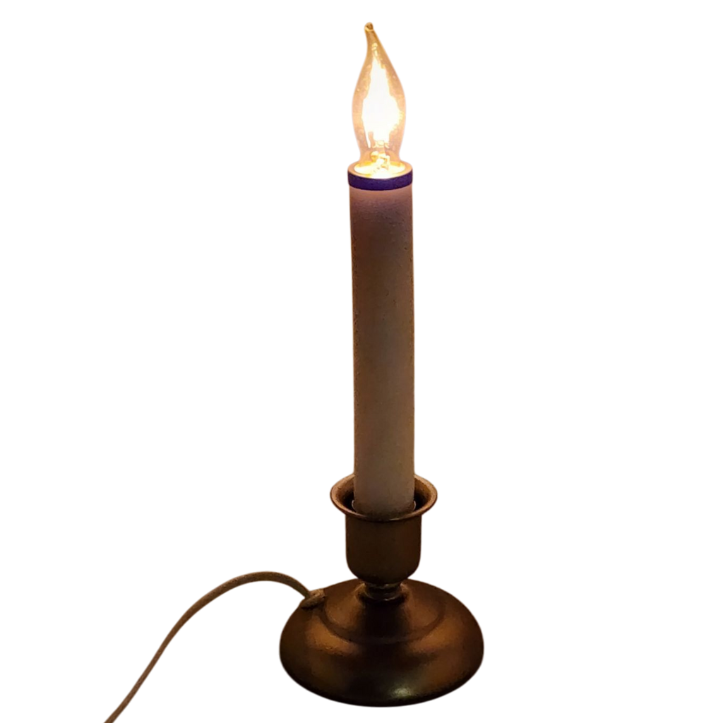 Bring traditional holiday warmth to your windows with this classic electric window candle complete with a 7-watt bulb rated for 3 000 hours of use. Featuring a matte pewter-colored base it comes with an extra long cord and a fused plug for safety and convenience. Designed to offer a soft natural candlelight glow this candle includes a built-in sensor that automatically turns the light on at night and off during the day making your seasonal decorating effortless and energy efficient.