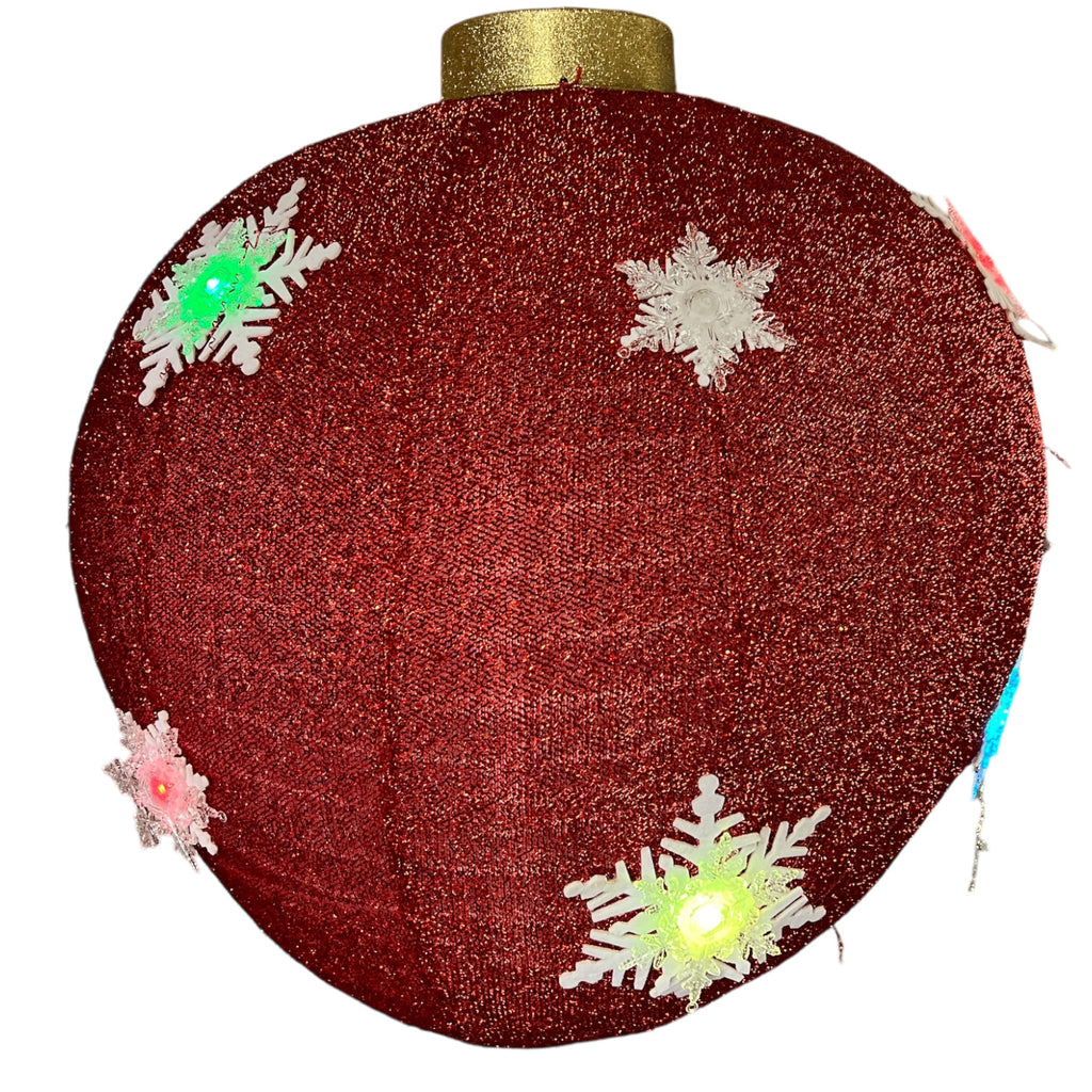 Bring the spirit of the season to life with this stunning 23.5-inch lighted collapsible holiday ball ornament. Drenched in vibrant red and adorned with sparkling snowflakes, this ornament is designed to make a statement in any holiday decor. Its glittery surface catches the light beautifully, ensuring it shines brightly whether you hang it indoors or outside, creating a delightful focal point that is sure to impress guests and family alike.
