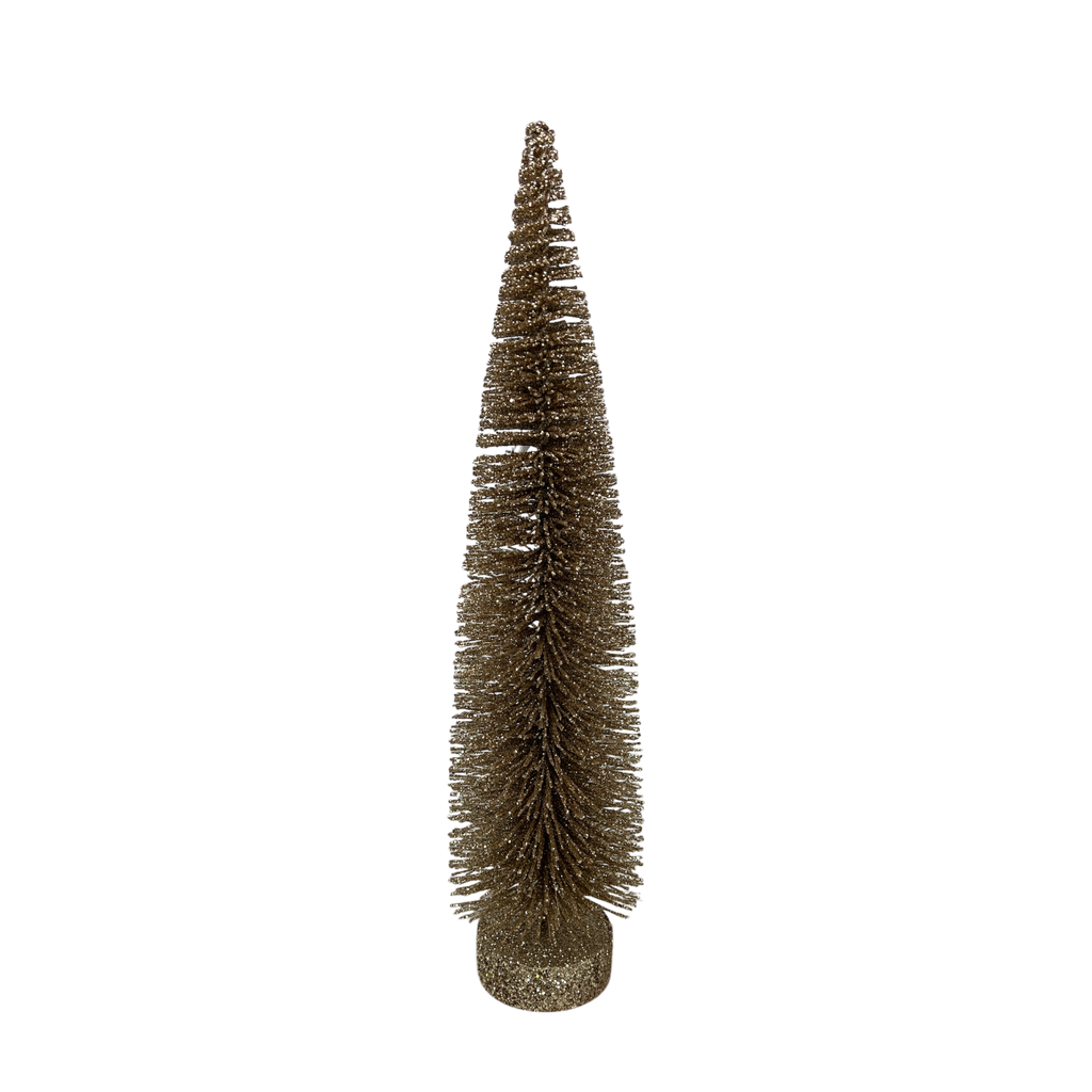 The shimmering finish and sleek silhouette of the Champagne Bottle Brush Tree make it a delightful centerpiece for your holiday table or an eye-catching accent on a mantel. Bottle brush trees hold a nostalgic place in holiday tradition, reminding us of cozy celebrations and cherished moments spent with loved ones. Featuring a classic base that enhances its stable stance, this tree is perfect for showcasing alongside ornaments or other festive decor. Bring a touch of sparkle and sophistication to your celebrations this season with the Champagne Bottle Brush Tree, where elegance meets holiday cheer!