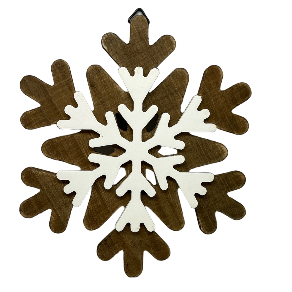 Each snowflake wall hanging comes with a sturdy metal hanger, ensuring easy and secure installation on any wall in your home. Whether displayed as a standalone statement piece or as part of a larger decorative arrangement, these snowflakes bring the serene beauty of a winter wonderland indoors. Ideal for living rooms, entryways, dining areas, or even as a festive touch to your office space, these wood-layered snowflakes add a touch of warmth and sophistication to your seasonal decor. Celebrate the magic of winter with our Wood Layered Snowflake Wall Hanging, and create a cozy, inviting atmosphere that will enchant your family and guests all season long.