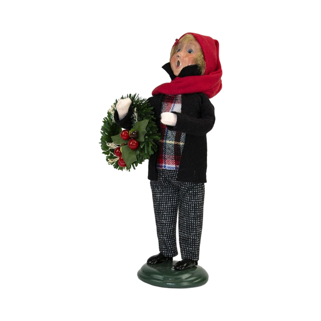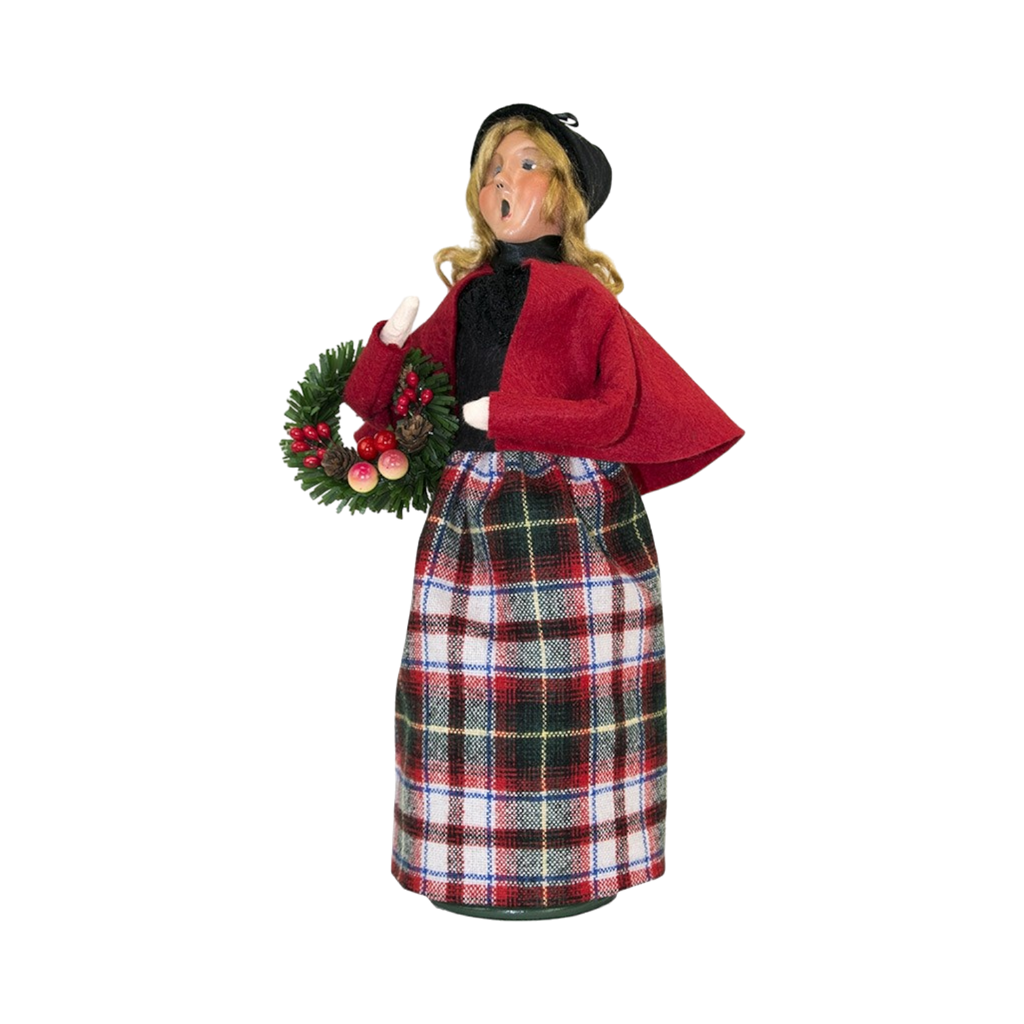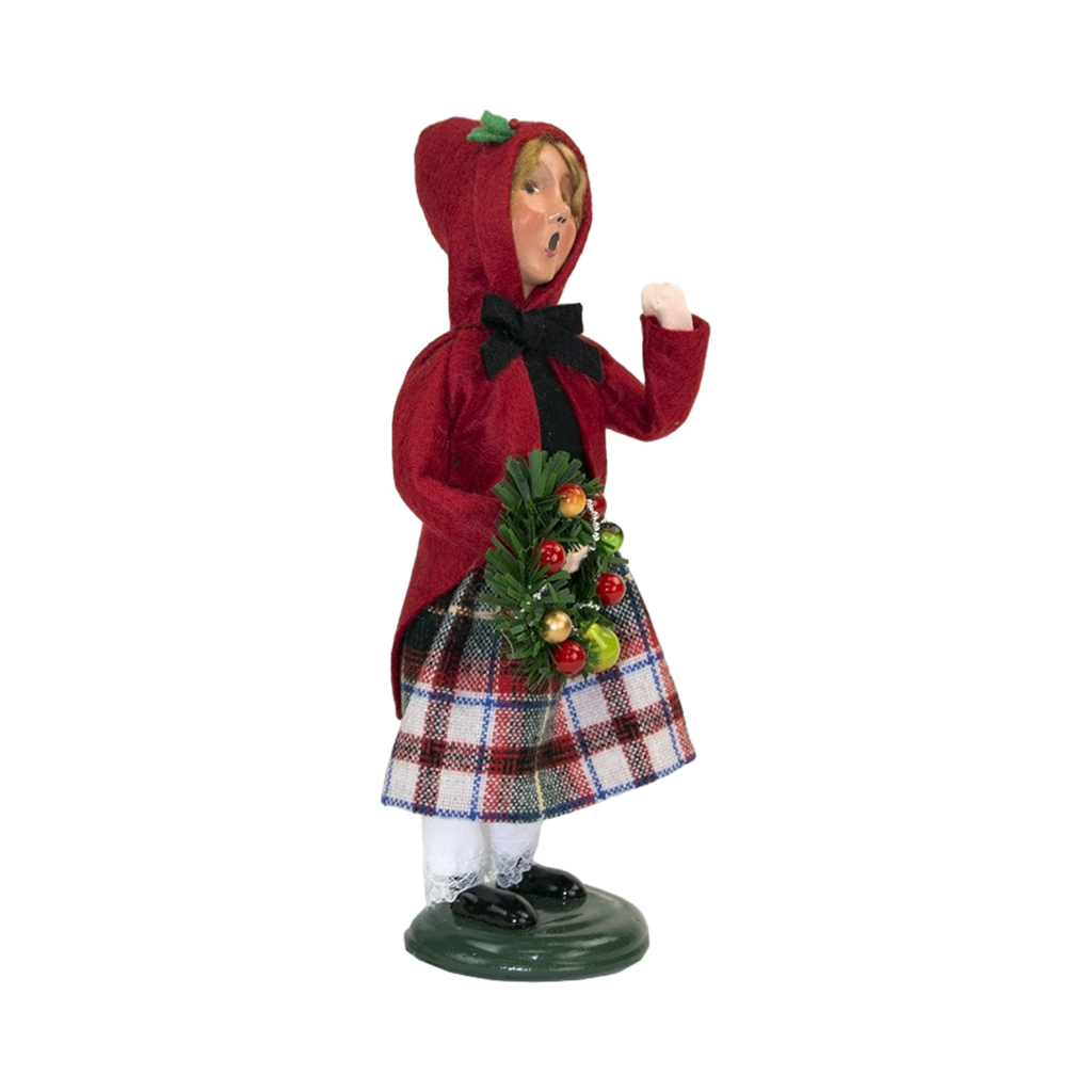 Dressed for Winter - Transport yourself to a bygone era of yuletide cheer with the Davis family dressed in their finest holiday attire, sharing the charm of a Dickensian Christmas. This ensemble embodies the warmth and merriment of Christmas while paying homage to the significance of cranberries during the season. The mother cradles a basket of glistening berries as a nod to the many cranberry inspired dishes she?ll soon prepare. The father showcases a holly cranberry wreath highlighted by the berries'. These Carolers are part of the 2024 Byers Choice Caroling Family Collection.