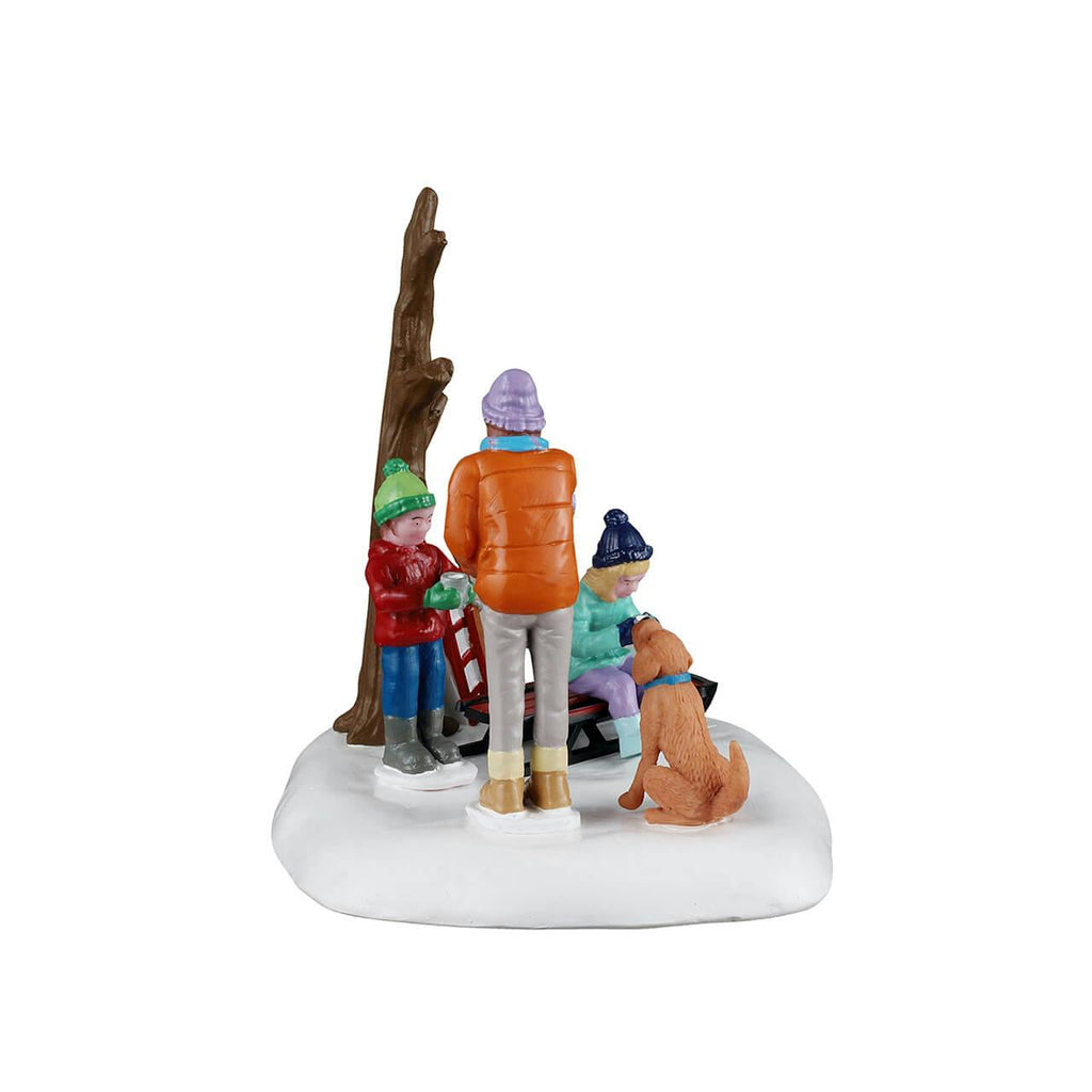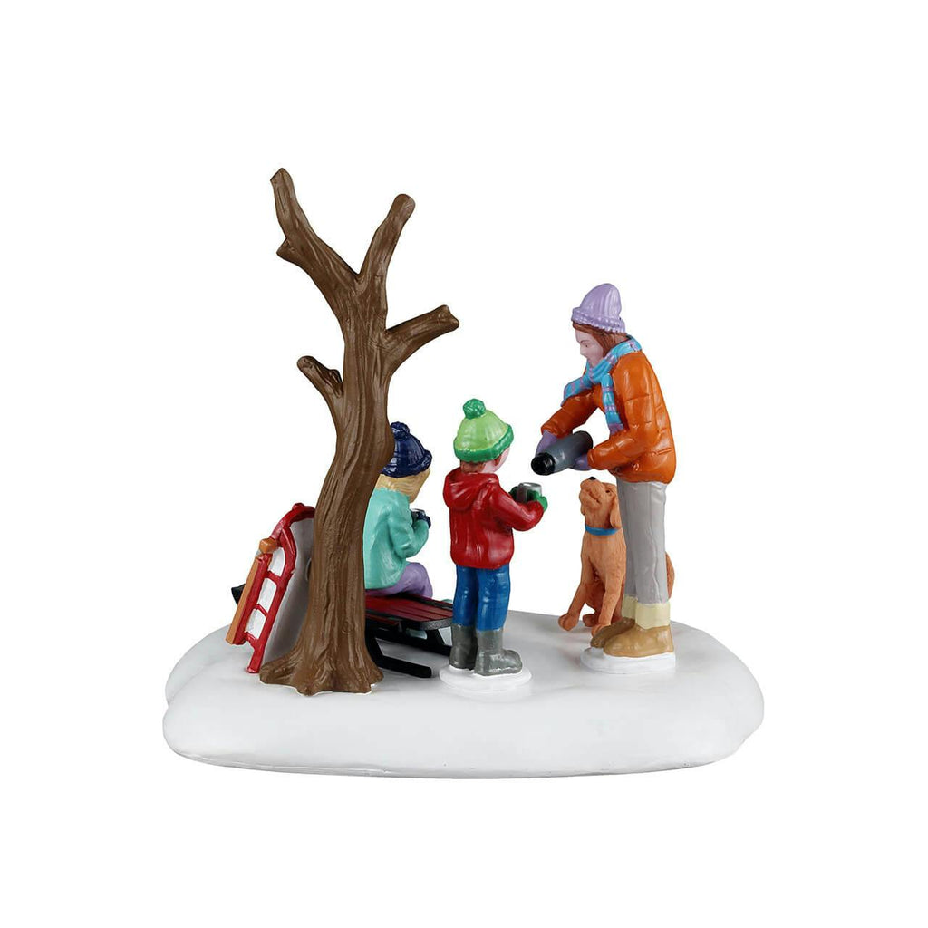 Capture the joyful essence of winter with the delightful Cocoa Time figure, where memories of snowy sleigh rides and warm cocoa come to life! This heartwarming scene depicts a mother and her two children cozily enjoying steaming mugs of hot chocolate after an exhilarating day outside in the snow. With their playful dog by their side, this charming vignette embodies the warmth and togetherness that fills the air during the holiday season. It's the perfect illustration of family bonding and creating cherished moments together amidst the winter wonderland!